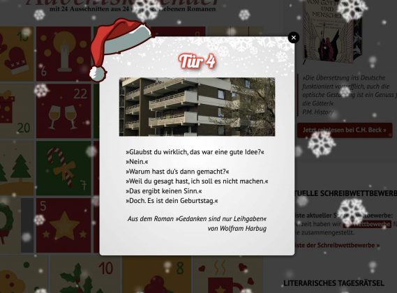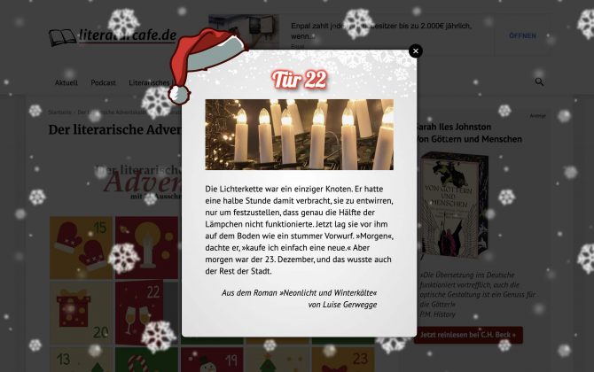 Seit 1998 gab es im literaturcafe.de den literarischen Adventskalender mit »24 Ausschnitten aus 24 nie geschriebenen Romanen«. Doch nach 27 Jahren wird es ihn in diesem Jahr nicht mehr geben. In den Zeiten von ChatGPT hat das literarische Spiel um angebliche Textstellen aus Romanen seinen Reiz verloren.