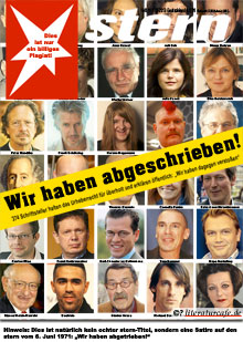 Und als wir den Vorfall mit der Parodie eines Stern-Titelbildes karikierten, glauben viele, diese Stern-Ausgabe sei echt. Ironie im Internet funktioniert selten.