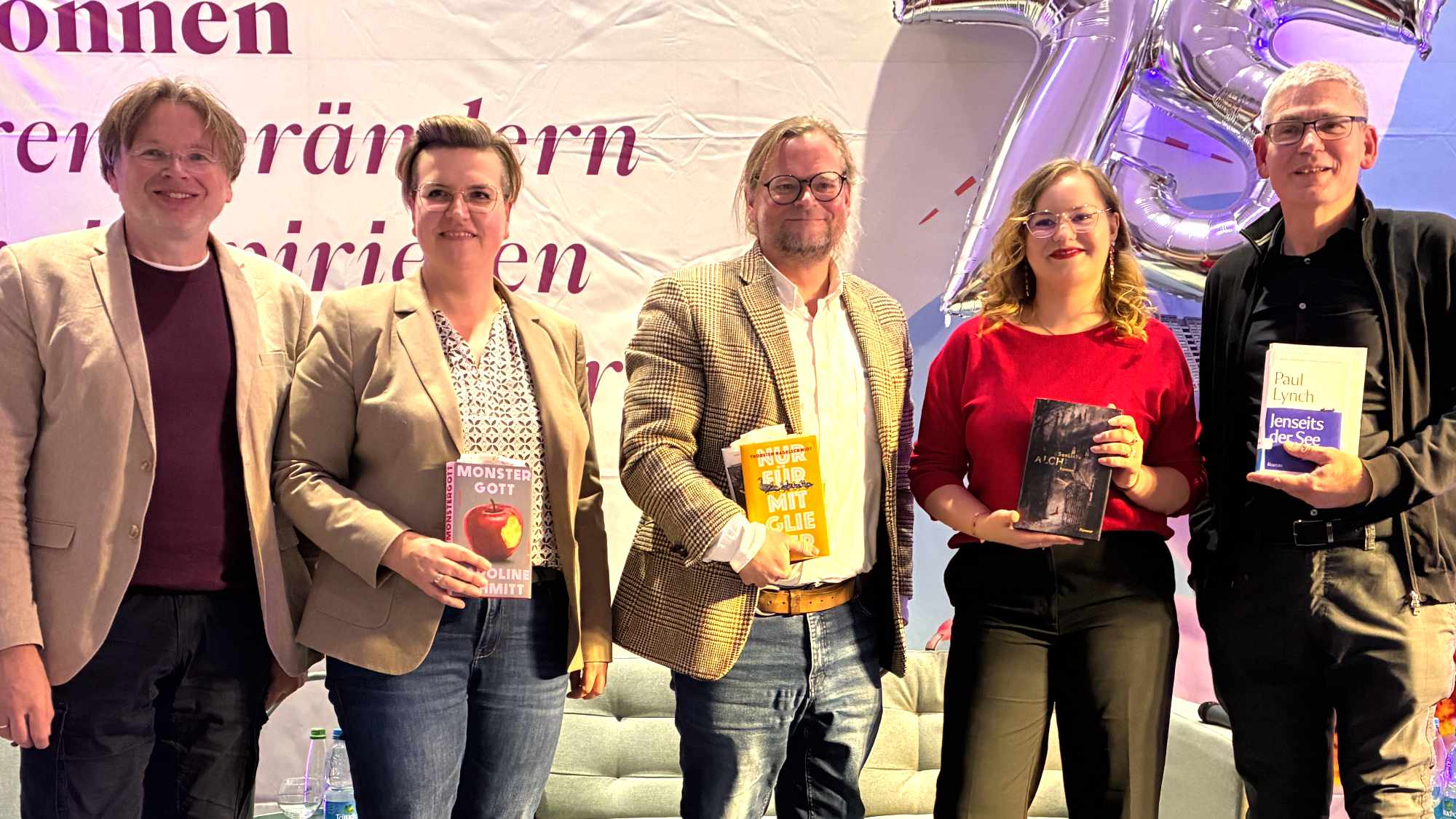 Die Stuttgarter Bücherrunde 2025: (v.l.n.r.) Wolfgang Tischer  (Moderation), Fleur Hummel, Kristoffer Mauch, Mareike Winter und Michael Steffel