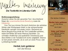 Dass Malte Bremer mitten im Sommer einen herbstlichen Prosatext bespricht, soll nicht bedeuten, dass die Pause bis zur nächsten Textkritik erneut so lang sein wird. Aber schließlich kann man auch am Strand Bücher über Leute...