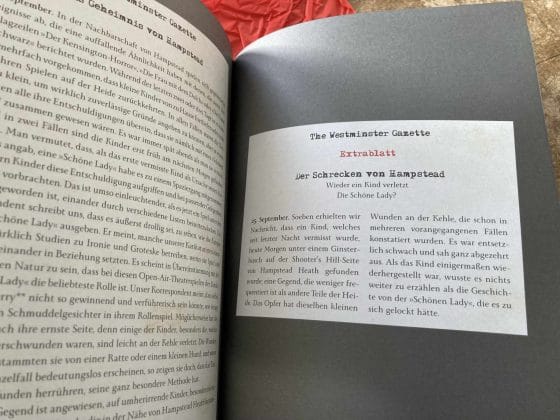 Mit 1.505 Gramm hat die Ausgabe allerdings ein beachtliches Gewicht, sodass sie besser im Lesesessel auf dem Schoß (Schloss?) als im Bett zu lesen ist.